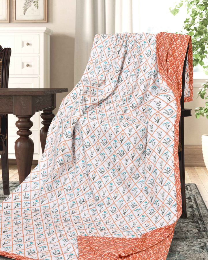 Aasmani Jaal Hand Block Printed Reversible Quilted Comforter (King Size)
